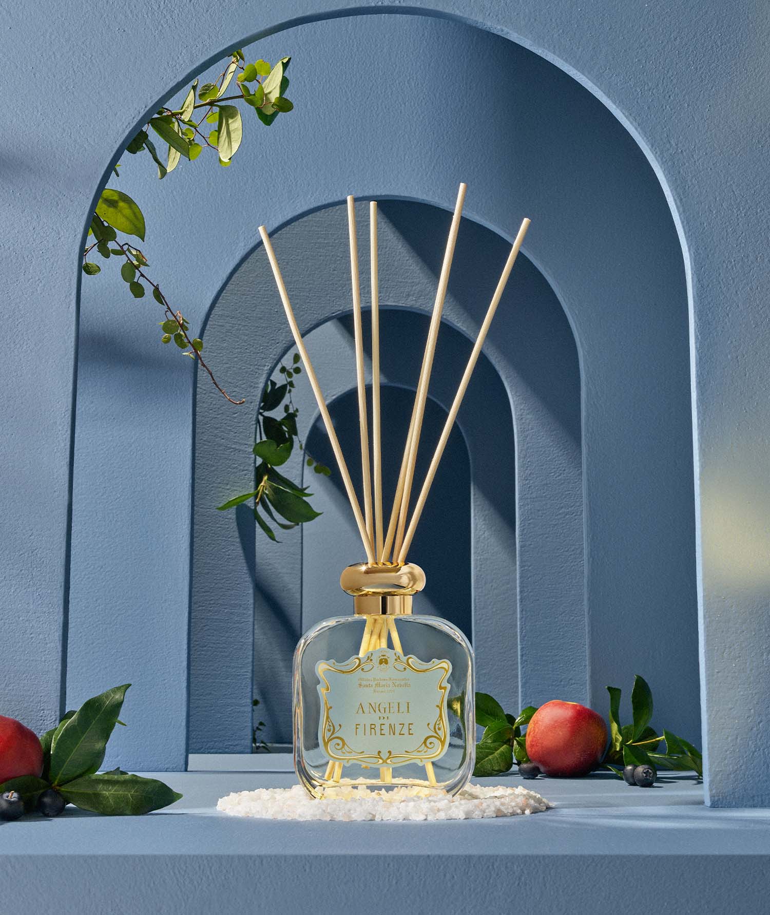Marine notes meet the brilliance of citrus fruits and peach: Angeli di Firenze is an hymn to youth and a perfect fragrance to brighten up the olfactive ambience of any house.