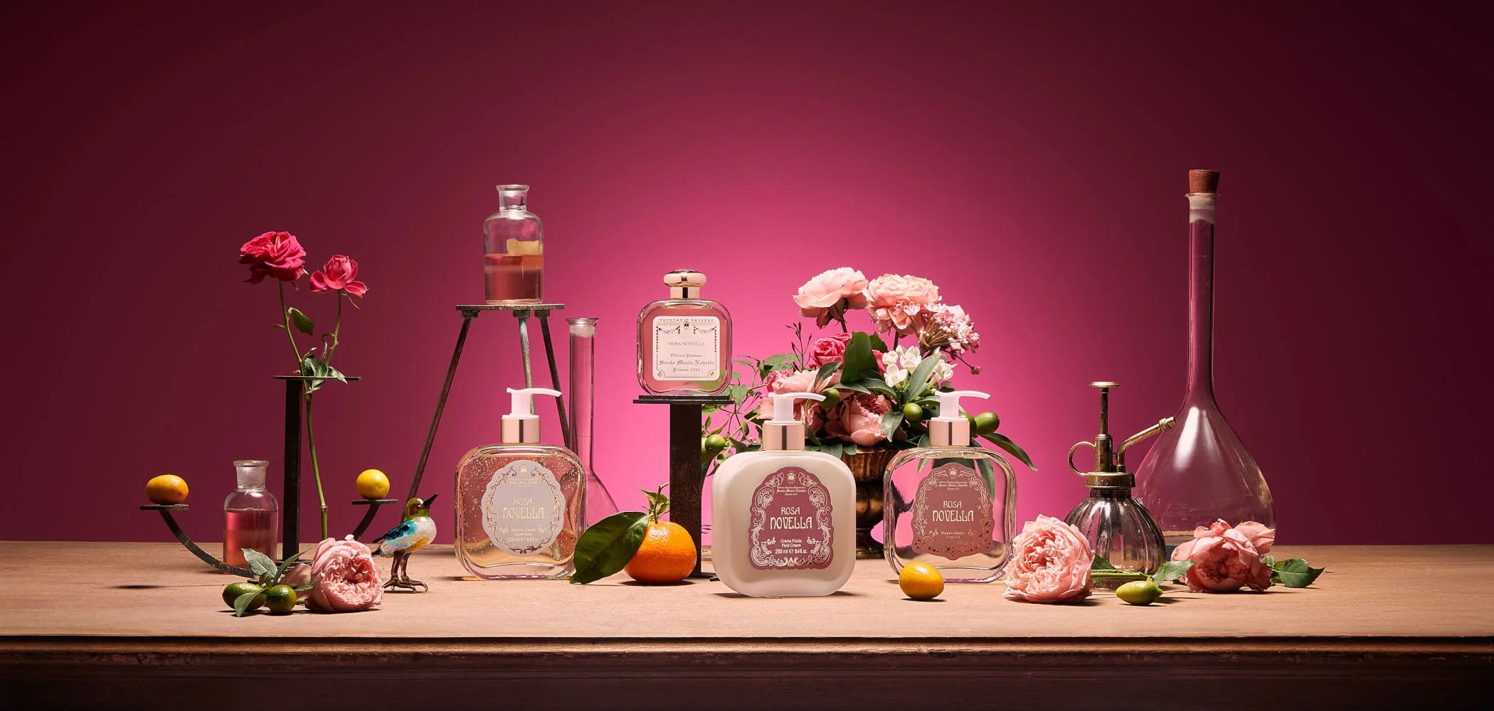 One of Officina’s most recent creations, Rosa Novella is a portrait of the time where the renewed blossoms are about to explode with all their energy and lush aromas.