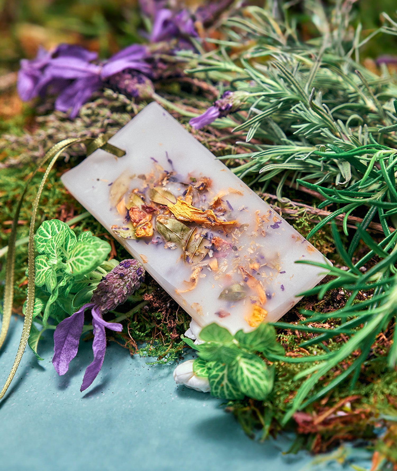 A sensory, tactile and olfactory journey: the Pot Pourri Scented Wax Tablets, cast and finished by hand, keep inside them myrtle leaves and berries, sunflower and cornflower petals. To perfume drawers and closets, and to recall the exquisite Tuscan Hills.