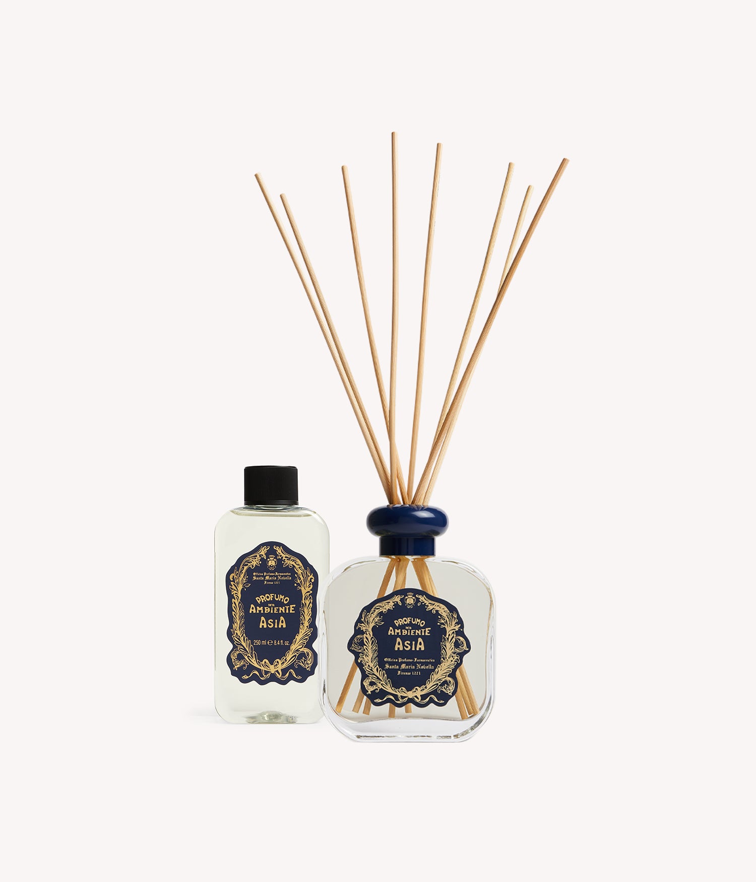 Diffusing the purity of the lotus flower and the magic of the iris into the home living space. Discover the Asia Room Fragrance Diffuser, a journey into the Far East and the charm of its ancestral culture.